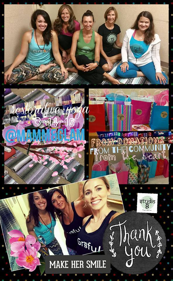 Once again we teamed up with Marshall MEdical Outreach to contribute to the health and wellness of Huntington's homeless population. Twenty-four women from various shelters were invited for a day of free mammograms, haircuts, manicures, lunches, chair massages and we provided relaxing and restorative Yoga. Through our community classes we raised enough money to provide each participant with a goodie bag including a gift certificate to River and Rail Bakery, tampons, toothbrushes, razors, nailcare and haircare products, nutritional supplements and snacks.